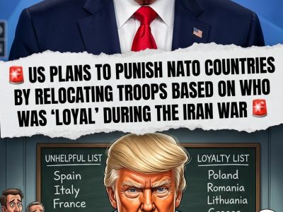 News CONFIRMED: TRUMP PLANS TO PUNISH NATO COUNTRIES BY RELOCATING TROOPS BASED ON WHO WAS “LOYAL” DURING THE IRAN WAR NT NgoTy 16th Apr, 2026 Read More