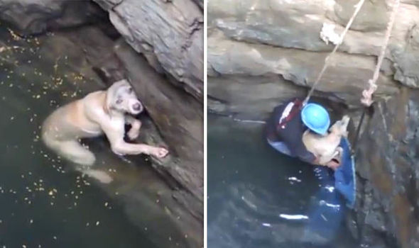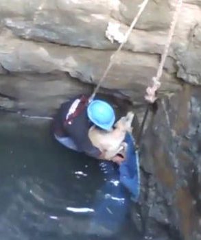 Navigating slippery rocks, the team advanced carefully. They knew the dog’s trust was fragile, her fear intense. One wrong move could spell disaster. And then, for a brief moment, their eyes met. She recognized them—help had finally come. Hope was no longer distant; it was within reach.