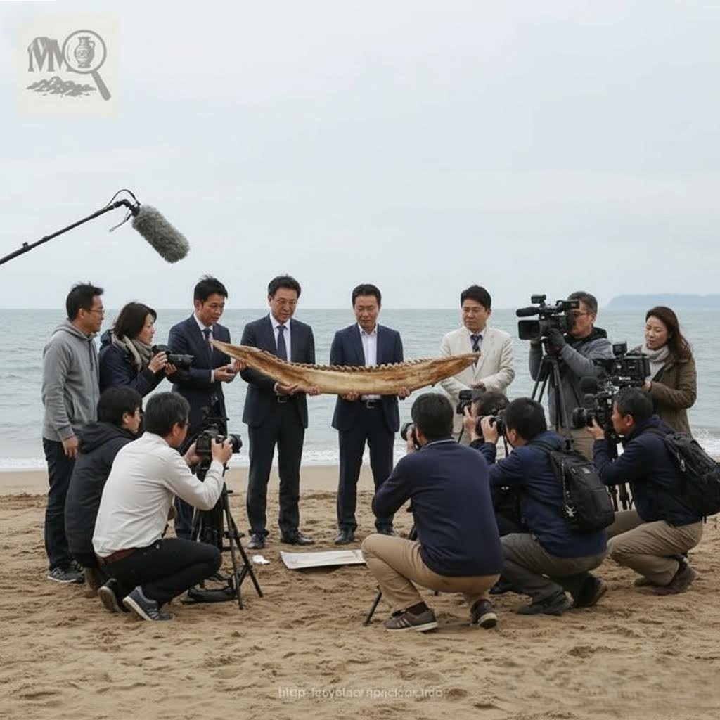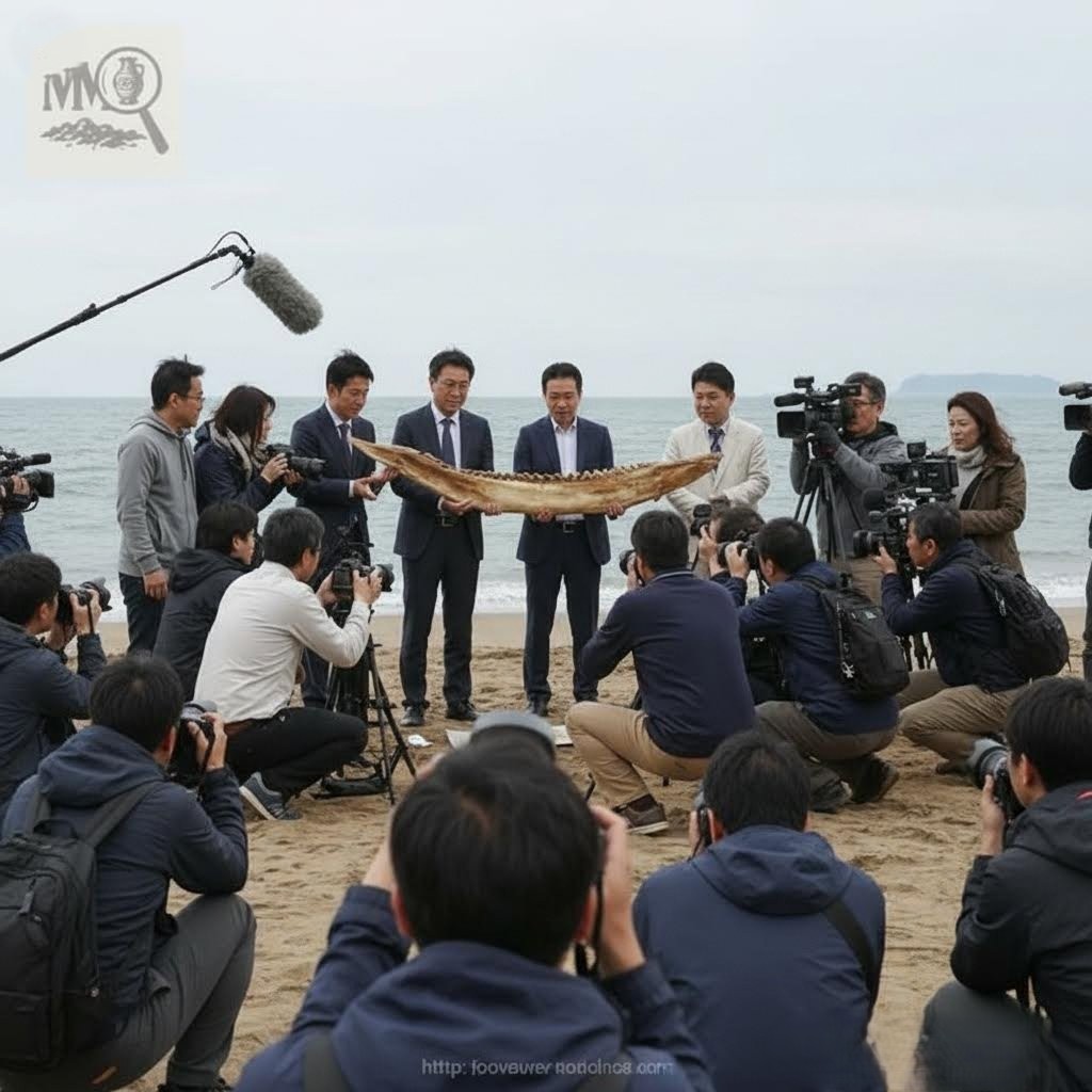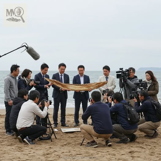 What unfolded today on Japan’s coastline felt less like a scientific briefing and more like a global cinematic event. Rows of reporters, environmental analysts, cryptozoologists, and curious onlookers packed tightly behind barricades, all eyes fixed on a small stage where officials unveiled what they described as a “jawbone of unknown marine origin.” But no amount of controlled language could mask the shock lingering beneath their rehearsed expressions.
