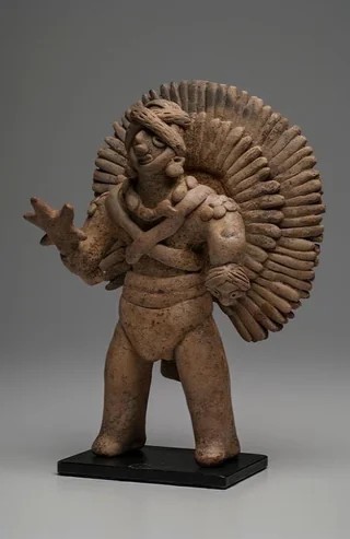 Such imagery reflects the region’s complex beliefs surrounding death, power, and the afterlife, and suggests that the figure may have served a funerary or ritual function, embodying protection, prestige, or the continuation of martial strength beyond the mortal realm.