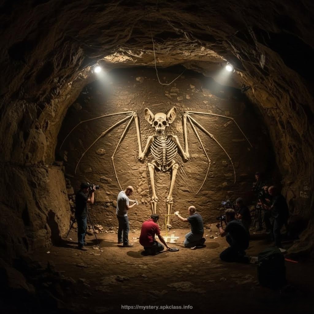 Deep within a remote mountain range, a hidden cave has revealed a discovery so extraordinary that it has stunned both scientists and the public alike. Researchers venturing into the cavern stumbled upon a colossal winged skeleton—its immense, bat-like wings spanning across the jagged rock walls, its humanoid torso towering with proportions that defy anything previously recorded in natural history.