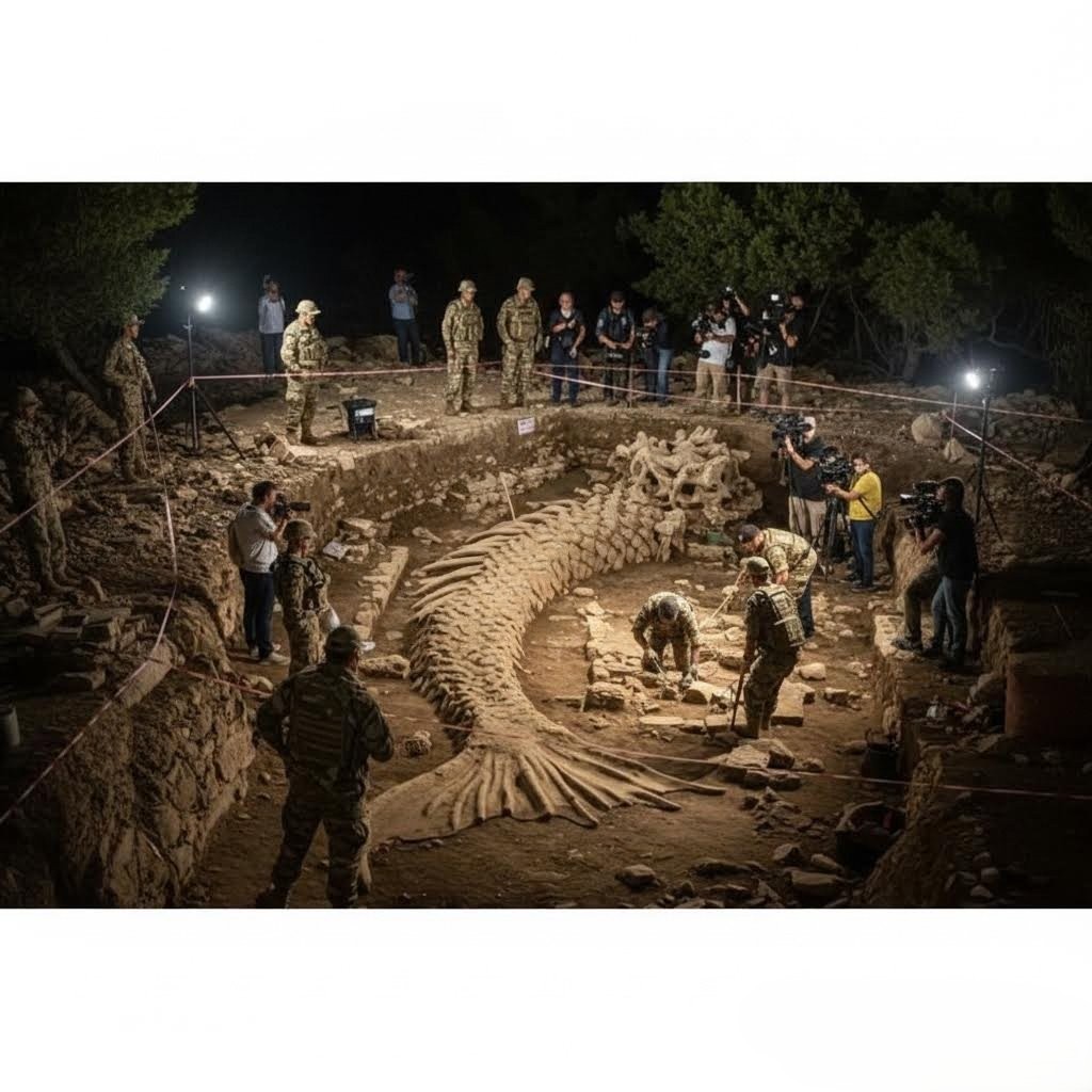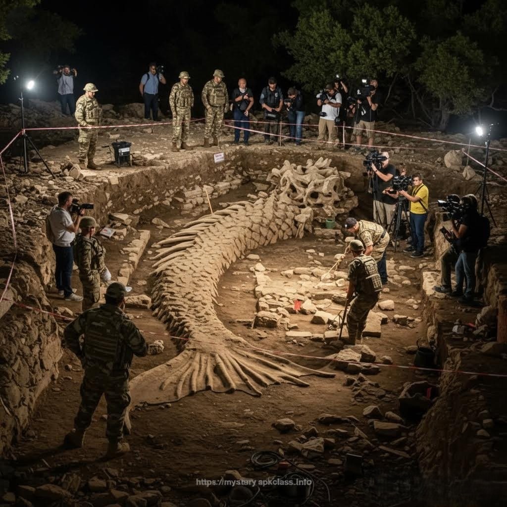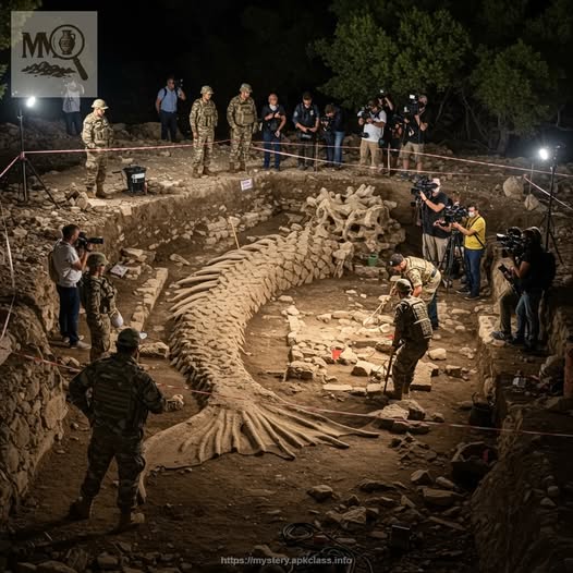 Journalists stationed behind barricades attempt to document what they can, but access is limited. Their footage shows only fleeting glimpses—a curved vertebra here, a scale-like fossil imprint there—enough to ignite the imagination but not enough to confirm the truth. Authorities sidestep questions, insisting that the excavation “requires further evaluation,” a phrase that has only fueled suspicion.