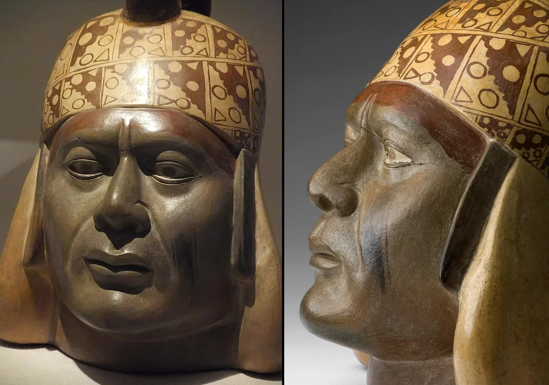 This finely crafted portrait vessel comes from the Moche culture of northern Peru, dating to ca. 100 BC – 500 AD.