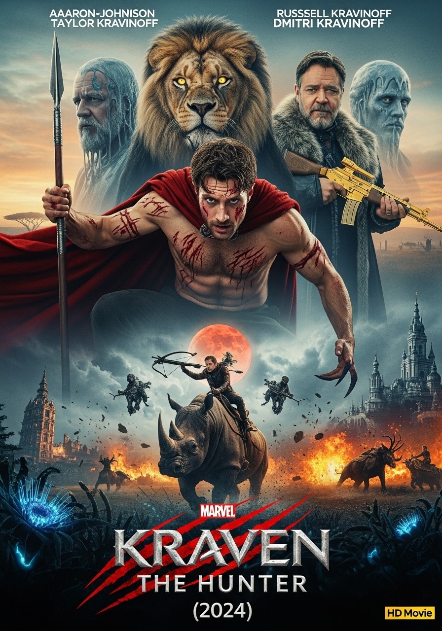 Step into the shadows of the Marvel universe as Kraven the Hunter (2025) redefines what it means to be a predator in a world of heroes and villains. Aaron Taylor-Johnson embodies the complex and relentless Sergei Kravinoff, a man driven by honor, obsession, and the insatiable thrill of the hunt. He is not merely a villain—he is a force of nature, a predator shaped by a code only he understands, and a man whose actions blur the line between justice and obsession.