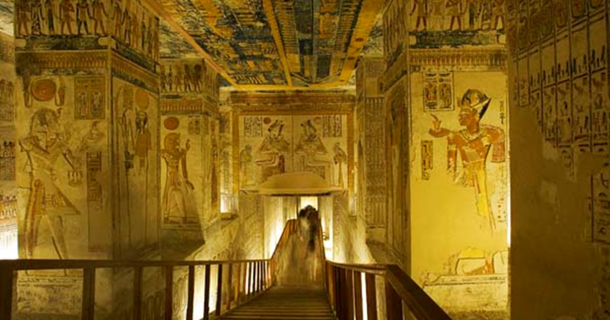 Originally begun for Ramesses V and later taken over and expanded by his successor Ramesses VI, the tomb features a long descending corridor richly adorned with detailed scenes from the Book of the Dead, the Book of Gates, and the Book of Caverns, reflecting ancient Egyptian concepts of the afterlife.