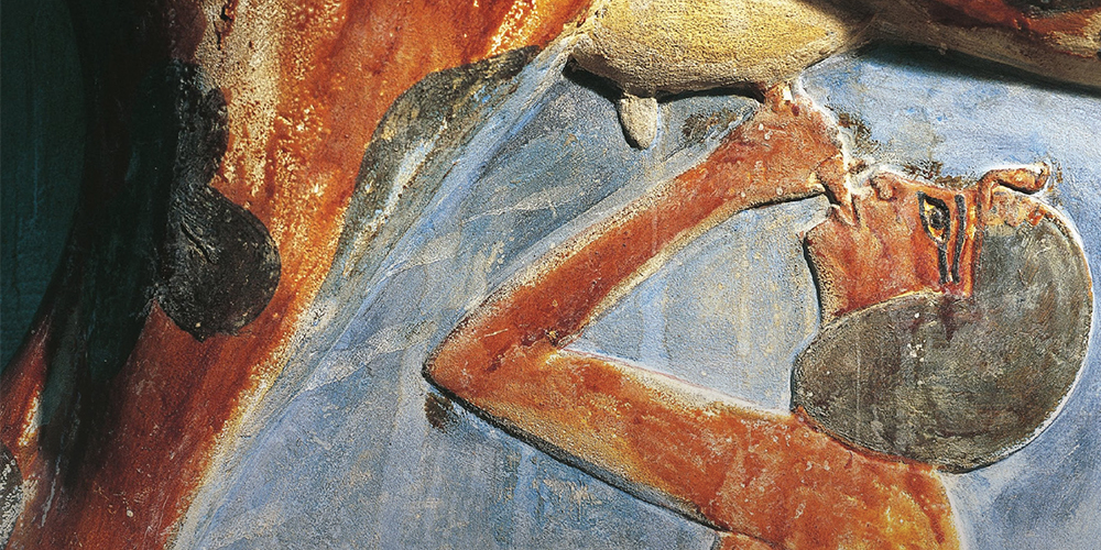 This polychrome limestone detail comes from a bas-relief in the Temple of Thutmose III, Deir el-Bahari, West Thebes  .