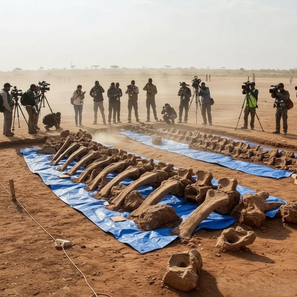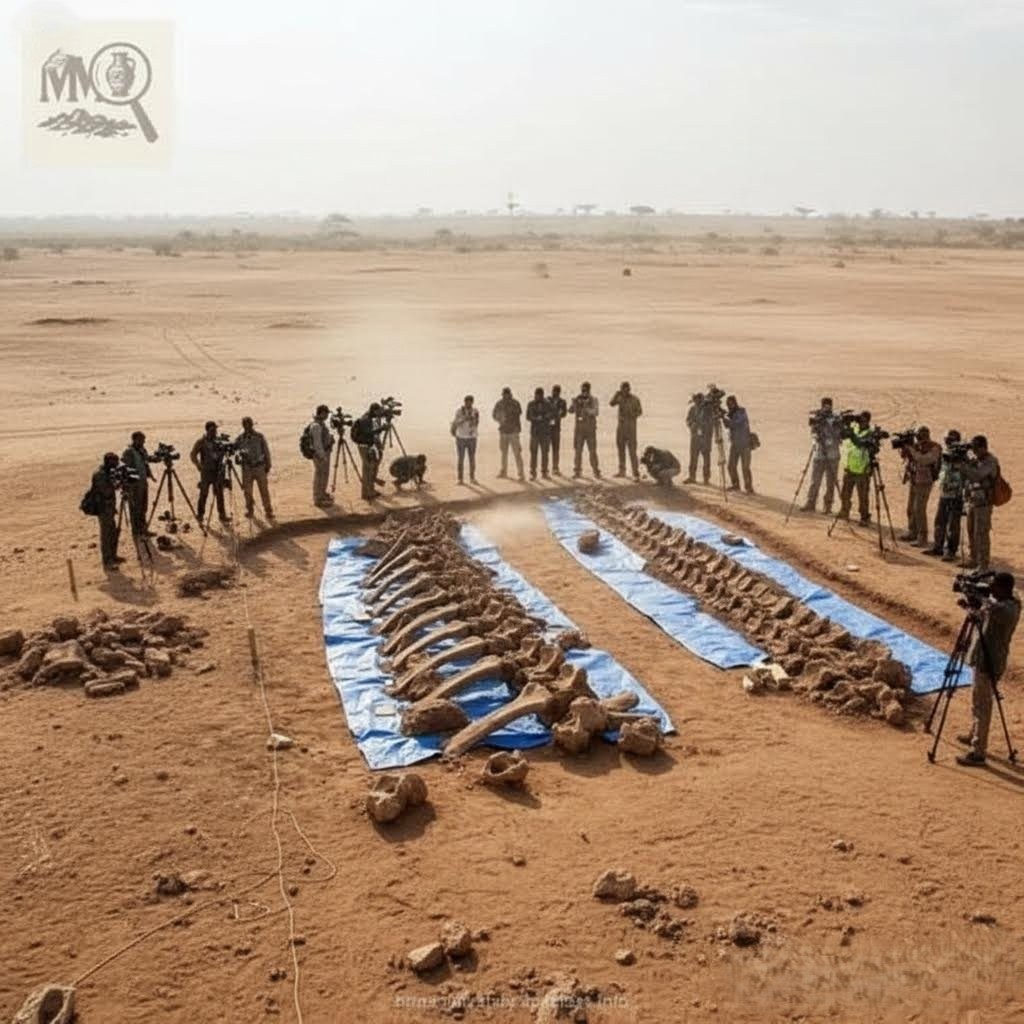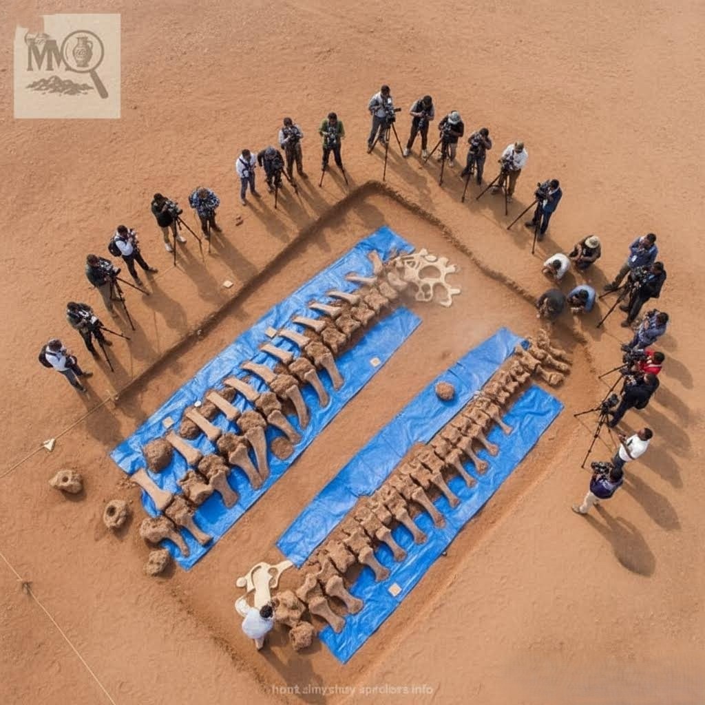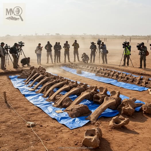 Deep in the heart of an endless, sun-scarred desert, a team of researchers has unearthed a colossal set of bones arranged in a long, curved line beneath the sand. The excavation site stretches across the empty plain like the exposed spine of some forgotten giant, compelling scientists, journalists, and conspiracy theorists to converge on the location. What began as a quiet dig has now become a global spectacle.