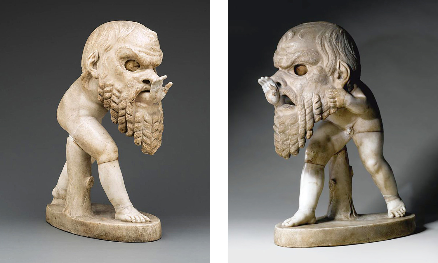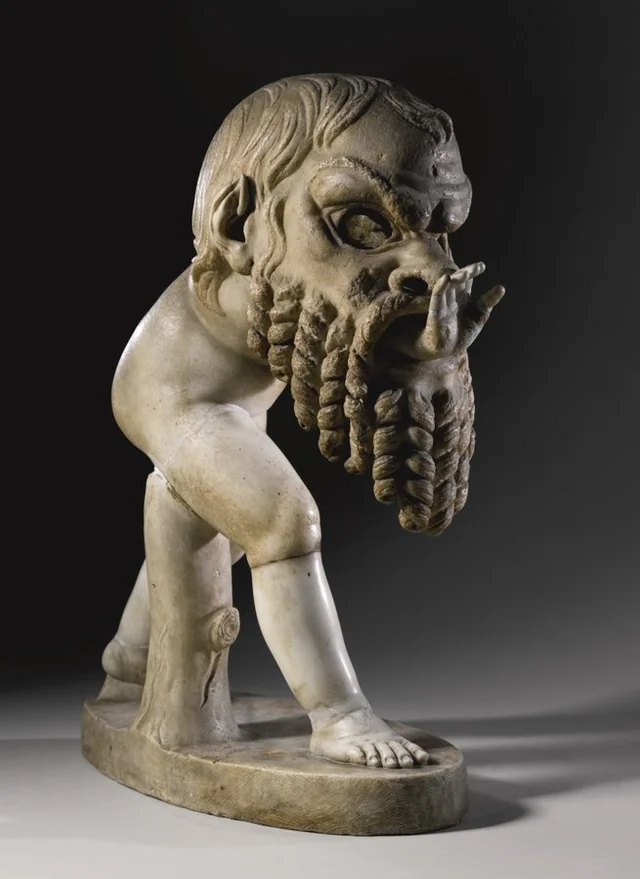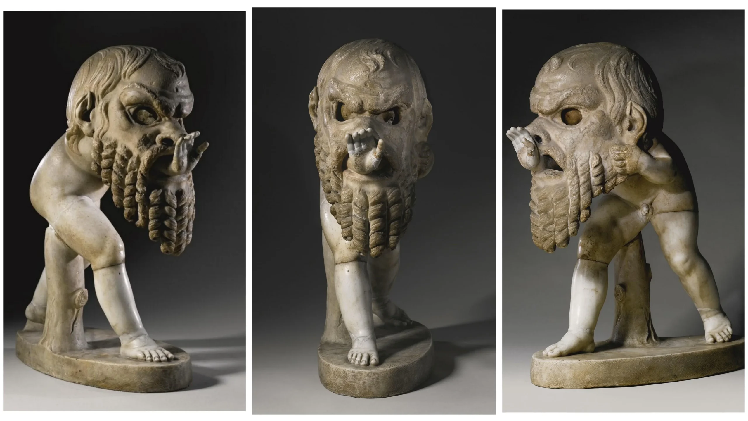 This sculpture not only serves as a charming representation of childhood and play but also offers insights into the Roman appreciation for theater, artistic expression, and the detailed craftsmanship that characterized Roman villas and private collections.