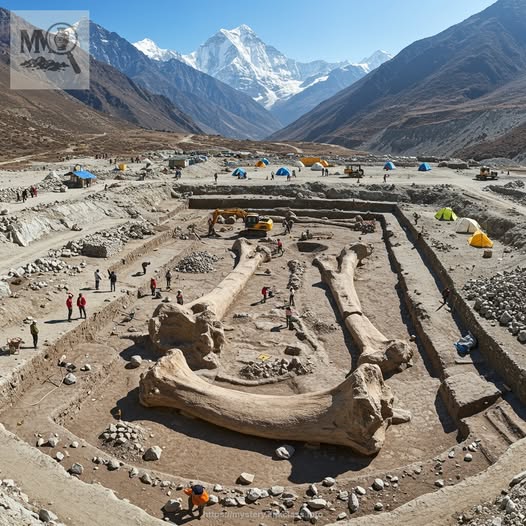 According to circulating claims, the bones are being unearthed from a narrow dig site wedged between steep rock formations. Their proportions, if genuine, far exceed those of known prehistoric mammals and suggest conditions that remain unexplained by current scientific knowledge. However, no official institution has yet confirmed responsibility for the excavation, nor has any academic body issued a verified statement regarding the discovery.