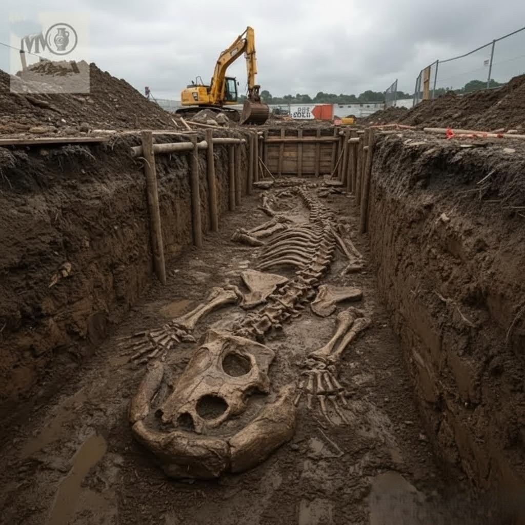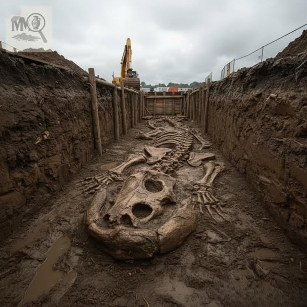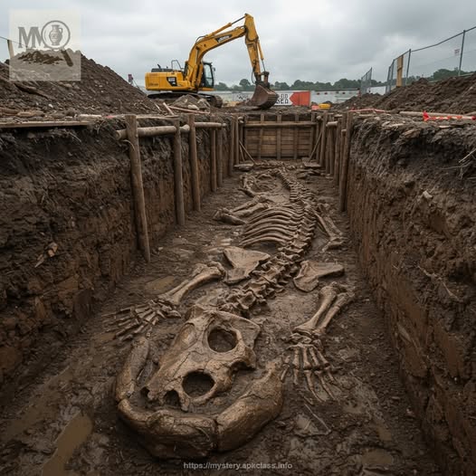 What began as a standard excavation has erupted into one of the most hotly debated discoveries circulating online. According to workers on-site, the digging equipment exposed what appears to be an enormous humanoid-like skeleton—its length stretching almost perfectly from one end of the trench to the other. The sheer scale of the remains instantly raised questions, and within hours the images were circulating across social media platforms, fueling intense public curiosity and suspicion.