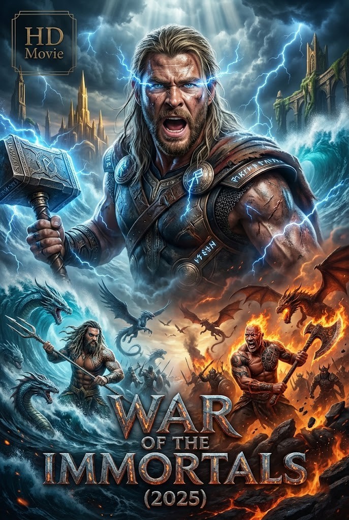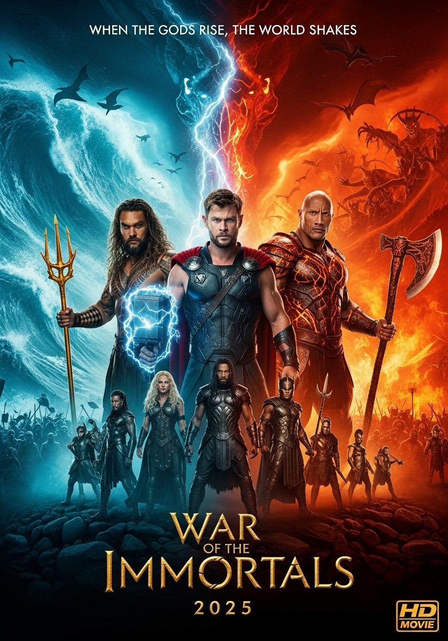 In an age where the lines between myth and reality are blurred, the immortal gods have returned, drawing humanity into a conflict beyond imagination. War of the Immortals is not only an epic action film, but also a story of power, honor, and moral choices between beings with overwhelming power and humans often limited by their fragile bodies.When a war between the immortal gods erupts, the fate of the human world hangs by a thin thread. Kronos (Jason Momoa), a fierce warrior with extraordinary strength, rises as a rebel against the oppressive regime of Zephyr (Chris Hemsworth), who possesses the ability to control storms and lightning that can destroy entire kingdoms. In a whirlwind of power and destruction, Atlas (Dwayne Johnson) – a hero steadfast in loyalty and honor – is caught between two forces, forced to make a life-or-death decision: should he side with a god or protect humanity from destruction?