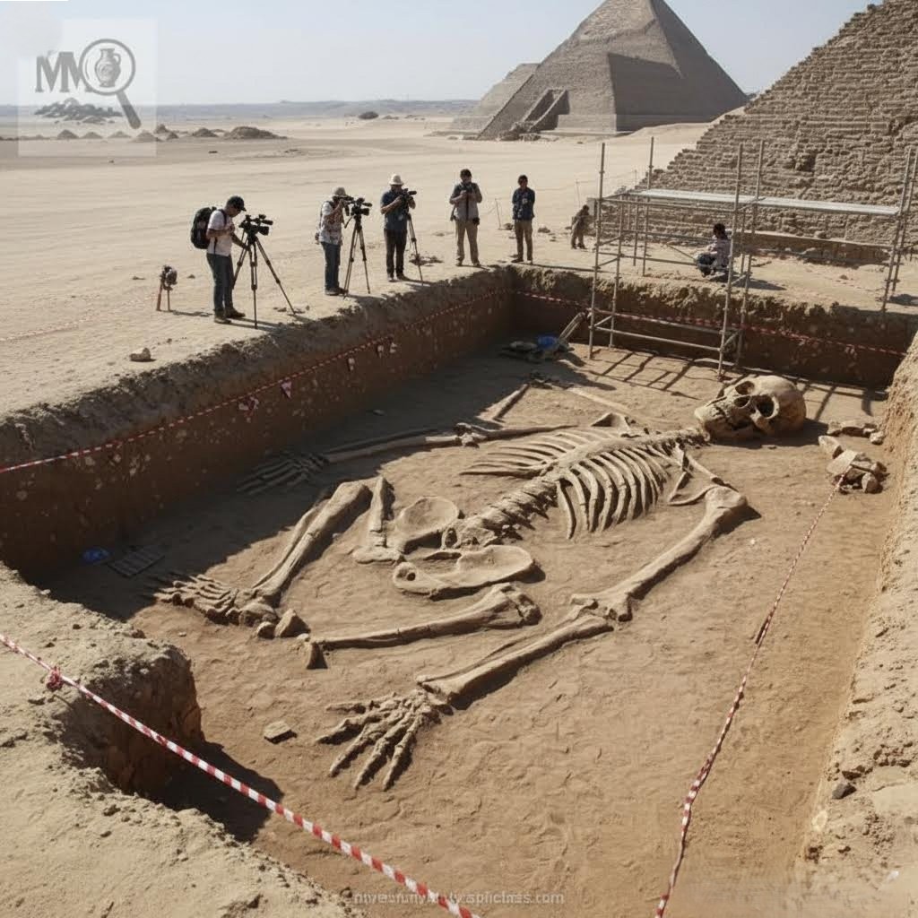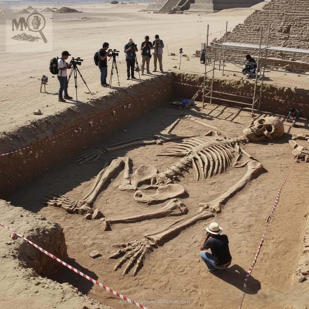 Reports of a colossal humanoid skeleton unearthed near ancient pyramid structures have triggered a wave of intense speculation, rapidly becoming one of the most discussed archaeological stories of the year. Media workers, independent researchers, and curious onlookers have converged on the area, hoping to capture images and firsthand impressions of what many are calling a potentially history-altering find. Photographs circulating online show a skeletal form of extraordinary proportions, carefully laid within layers of soil that appear undisturbed for centuries.