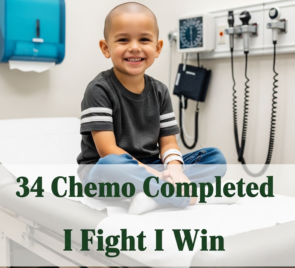 After 34 brave chemo sessions, I’m standing here — small but mighty, tiny but unbreakable. 💪🎗️✨