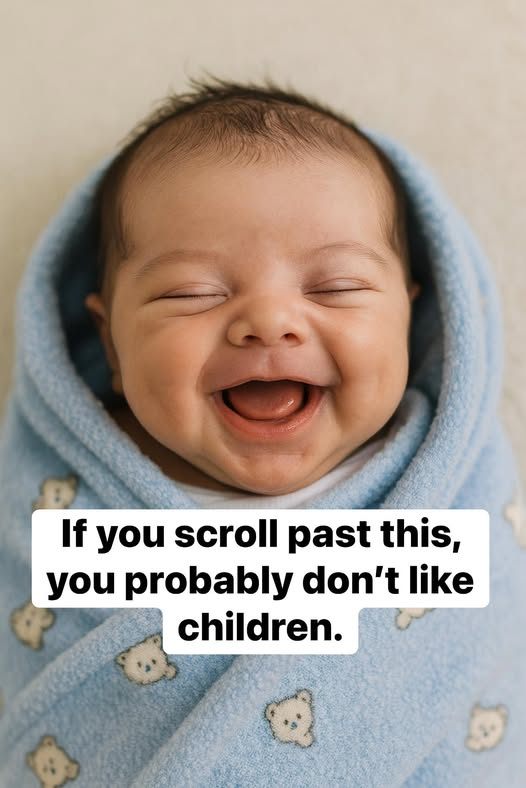 Some days, we scroll through social media without feeling much at all — tired, overwhelmed, disconnected. Then suddenly, in the middle of countless posts, a small moment appears: the radiant smile of a baby wrapped in a soft blue blanket, eyes closed in pure joy, mouth wide open as if discovering the world’s first miracle.