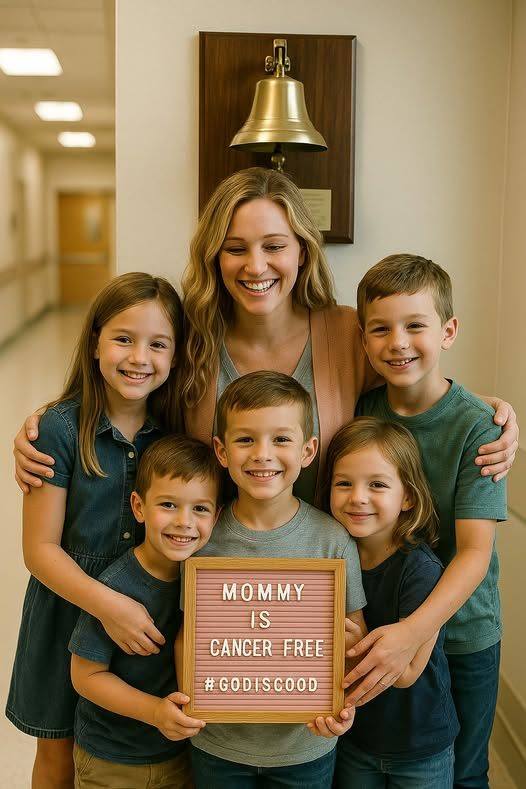 In the quiet hospital hallway, a place that once held countless tears and prayers, the sound of a ringing bell echoed—marking a victory many families dream of. The image of a mother standing with her smiling children is more than just a photograph. It is a living testament to strength, faith, and the real miracles that happen in this world.