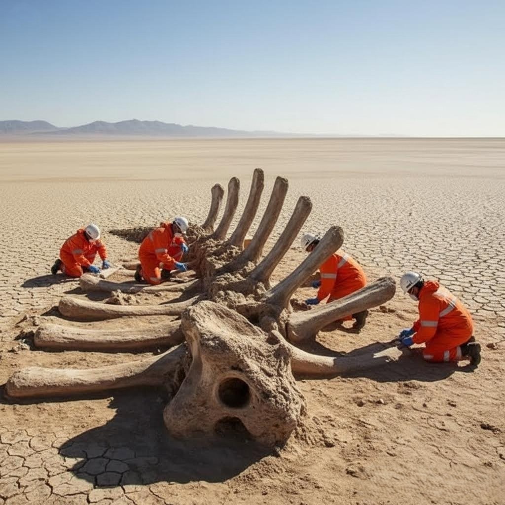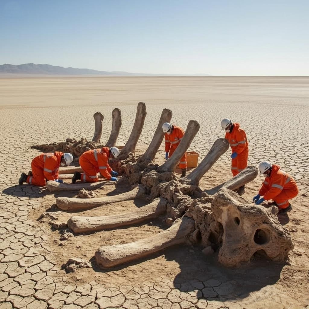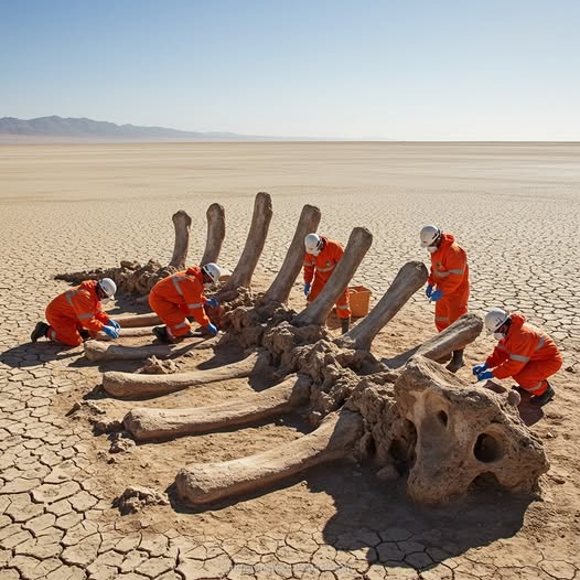 In a desolate stretch of cracked earth, scorched by relentless sun and seemingly barren of anything but dust and silence, a research survey has revealed a massive rib-like structure lying partially exposed in the sand. The find—captured in early expedition photographs—has rapidly circulated online, triggering a wave of fascination, skepticism, and debate.