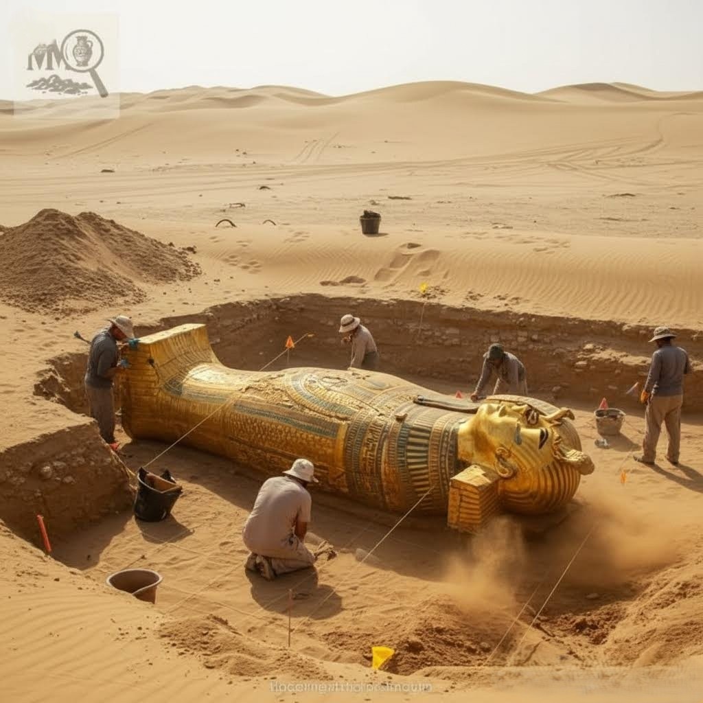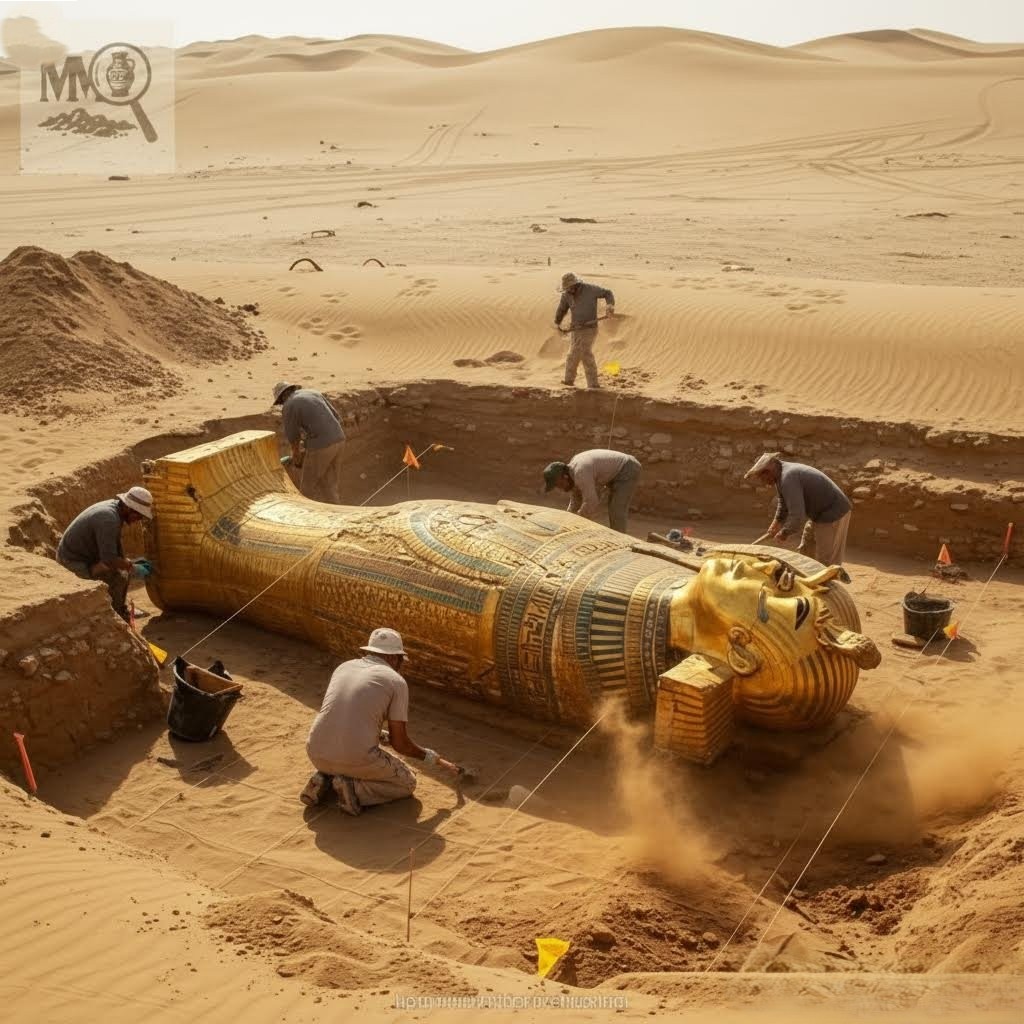 A wave of fascination has swept across the world following the unexpected unearthing of a massive golden sarcophagus from beneath a remote stretch of desert. Long buried beneath shifting dunes and forgotten landscapes, the artifact has stirred intense discussion among historians, archaeologists, and the general public. Its size, craftsmanship, and the sheer mystery surrounding its origin have made it one of the most talked-about discoveries in recent memory.