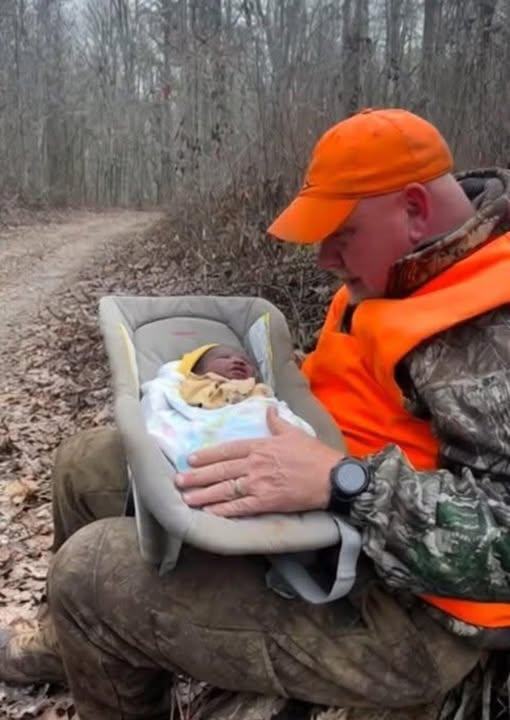 He expected to spot deer tracks, maybe a rustling branch or the distant echo of wildlife. What he found instead was something no hunter would ever anticipate: a baby carrier tucked deep within the brush, almost hidden among the thorns. And inside it—a newborn, crying softly, shivering in the cold.