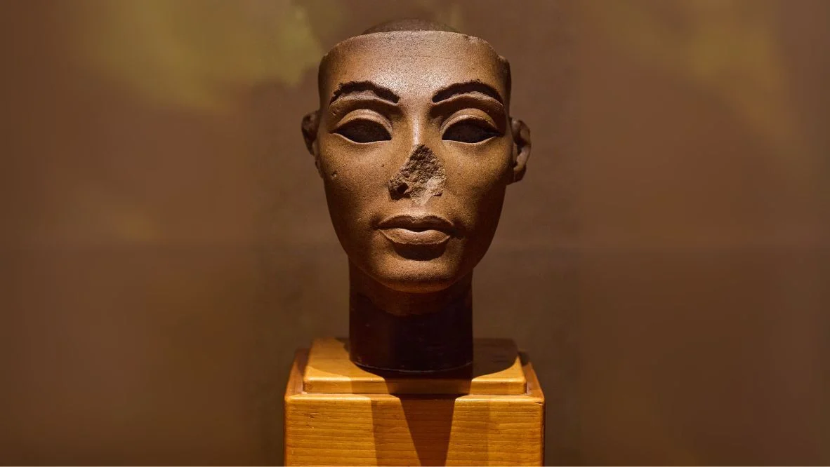 Nefertiti played a central role in this transformation, often depicted standing alongside the king as an equal partner in both religious and political life. Her famous painted limestone bust, discovered in Amarna, has become an icon of ancient Egyptian art and a symbol of timeless elegance.