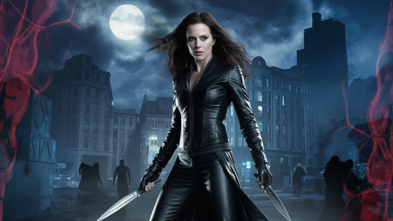 The trailer teases breathtaking battle sequences — vampires scaling fortress walls under the crimson moon, lycans tearing through armored convoys, and Selene herself wielding twin ultraviolet blades in a fight that blurs the boundary between vengeance and redemption.