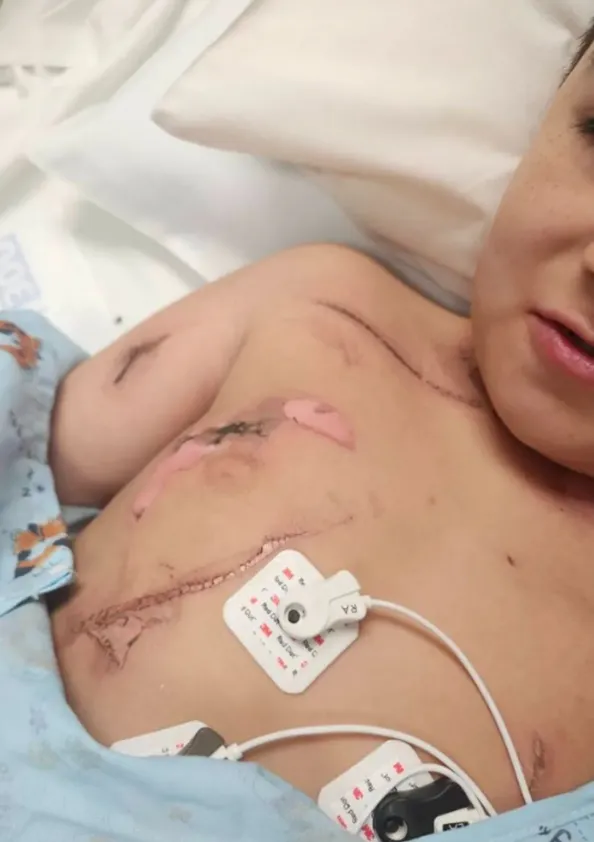 After the transplant, Albie entered the next phase: proton beam therapy — twelve rounds designed to target cancer cells while sparing healthy tissue.