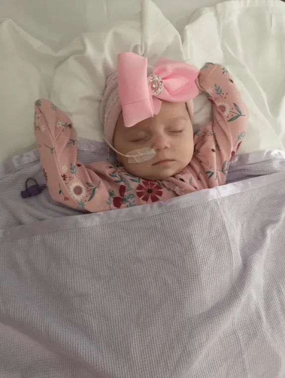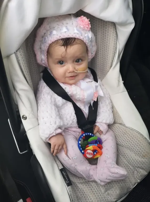 From that point on, Bonnie-Rose’s life became a careful balance of observation and care. Regular echocardiograms tracked her heart. Doctors monitored her closely. The NG tube became a lifeline, giving her the strength to grow.