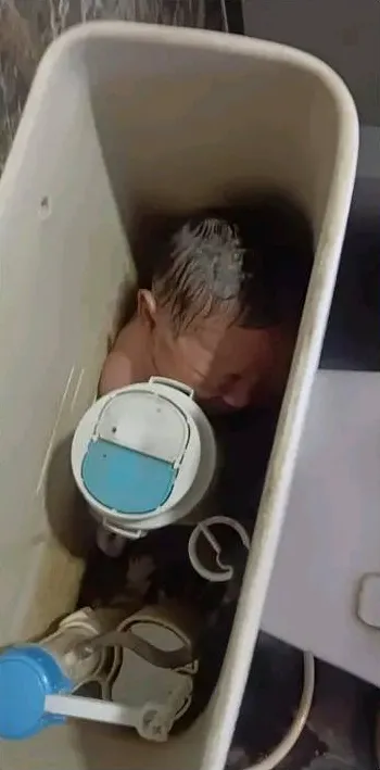 Inside the toilet cistern, submerged in cold water, was a newborn baby girl.