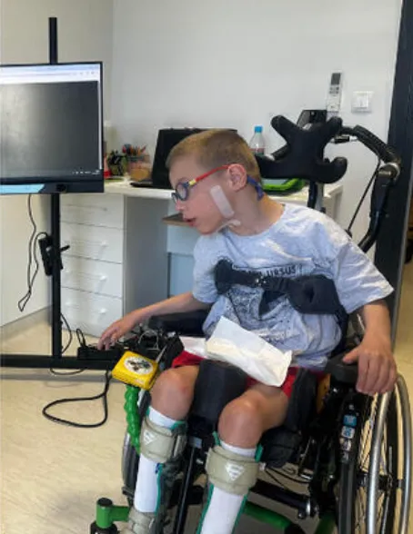 For eleven years, rehabilitation has been a non-stop routine. Daily therapy sessions. Endless stretching. Specialized equipment — active wheelchairs, standers, braces. Repeated botulinum injections to fight the muscle spasticity taking over his body.