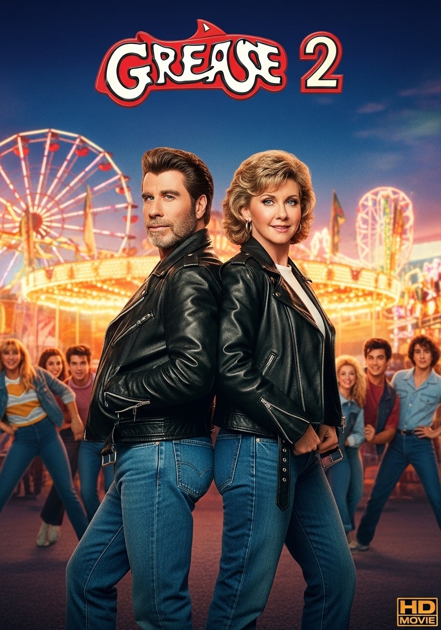 The story picks up as the students of Rydell High face the timeless challenges of youth — love, friendship, identity, and the thrill of first passions. Danny Zuko (Travolta), now a seasoned mentor and still the king of cool, guides a new generation of greasers through romance, rebellion, and self-discovery, while Sandy Olsson (Newton-John), radiant and wise, inspires the students to embrace their individuality without losing the magic of youthful dreams. Meanwhile, Rizzo (Channing) continues to command the halls with wit, heart, and unapologetic confidence, showing that true style and strength never fade.
