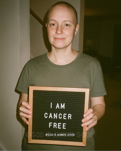 There are moments in life that feel too big for words—moments that hold years of pain, courage, faith, and quiet battles that few people ever see. One of those moments is captured in a simple yet powerful photo of a person holding a board with the words: “I AM CANCER FREE.”
