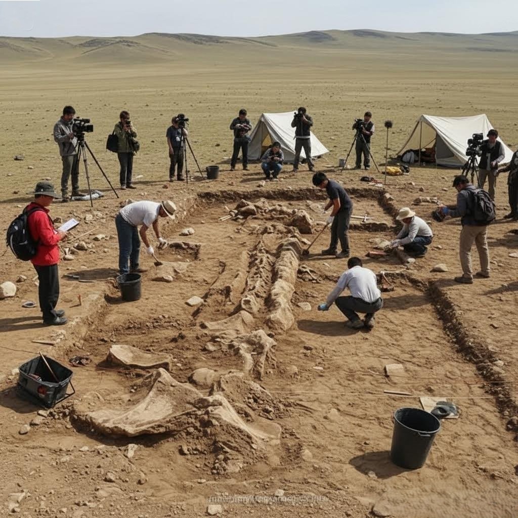 MASSIVE UNEARTHED SKELETON STIRS GLOBAL DEBATE IN THE MONGOLIAN STEPPE