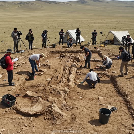 Archaeologists working deep within the remote and windswept plains of the Mongolian Steppe have uncovered a discovery that is rapidly becoming one of the most debated archaeological finds in recent years: an astonishingly large ancient skeleton unlike any human remains previously documented. The site, isolated and rarely visited, has suddenly transformed into a focal point of global attention as media crews, scientists, and independent observers converge from around the world.