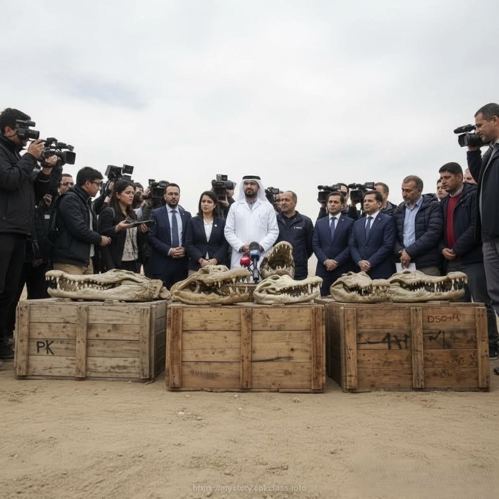 What was unveiled as a landmark paleontological announcement has rapidly evolved into a flashpoint of global debate. Rows of massive fossilized skulls, carefully secured in wooden crates and presented under intense media scrutiny, have captured the world’s attention. Officials describe the specimens as evidence of a revolutionary discovery—remains of long-extinct apex predators that may once have ruled the region and altered current understanding of prehistoric ecosystems. The sheer scale and apparent preservation of the skulls have fueled awe, curiosity, and a surge of public fascination.