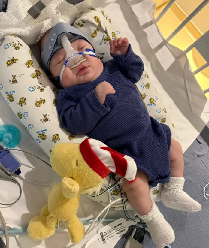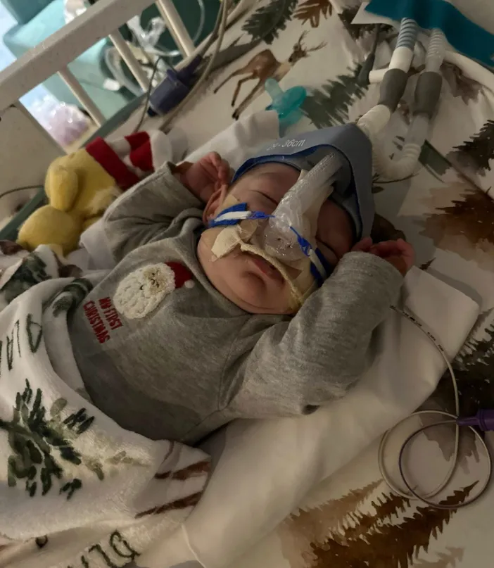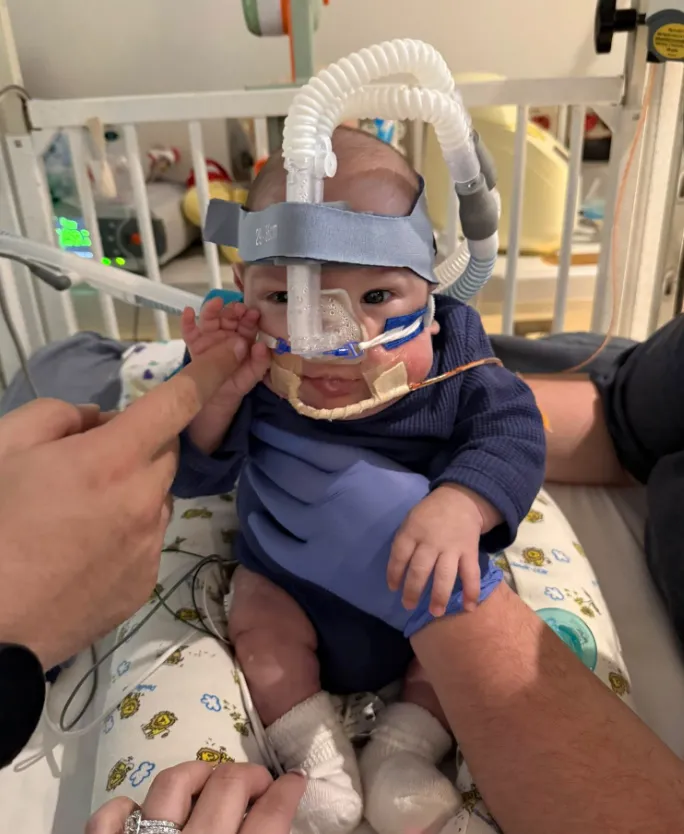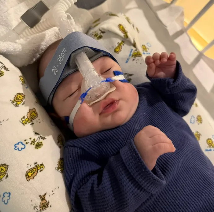His days are shaped by careful monitoring—oxygen levels, breathing patterns, heart rate, and overall stability. The CPAP machine has been a constant presence, delivering the airway pressure his fragile lungs need to function while they slowly mature.