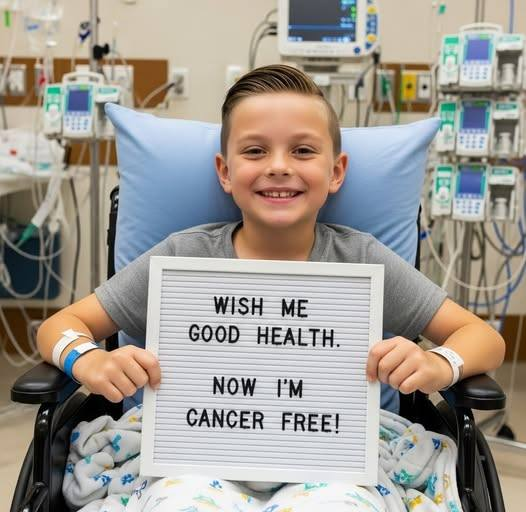 This moment—the sign, the smile, the words “cancer-free”—represents everything families hope for during childhood cancer treatment. It is a testament to modern medicine, compassionate care, and the unstoppable strength of a child who refused to give up.