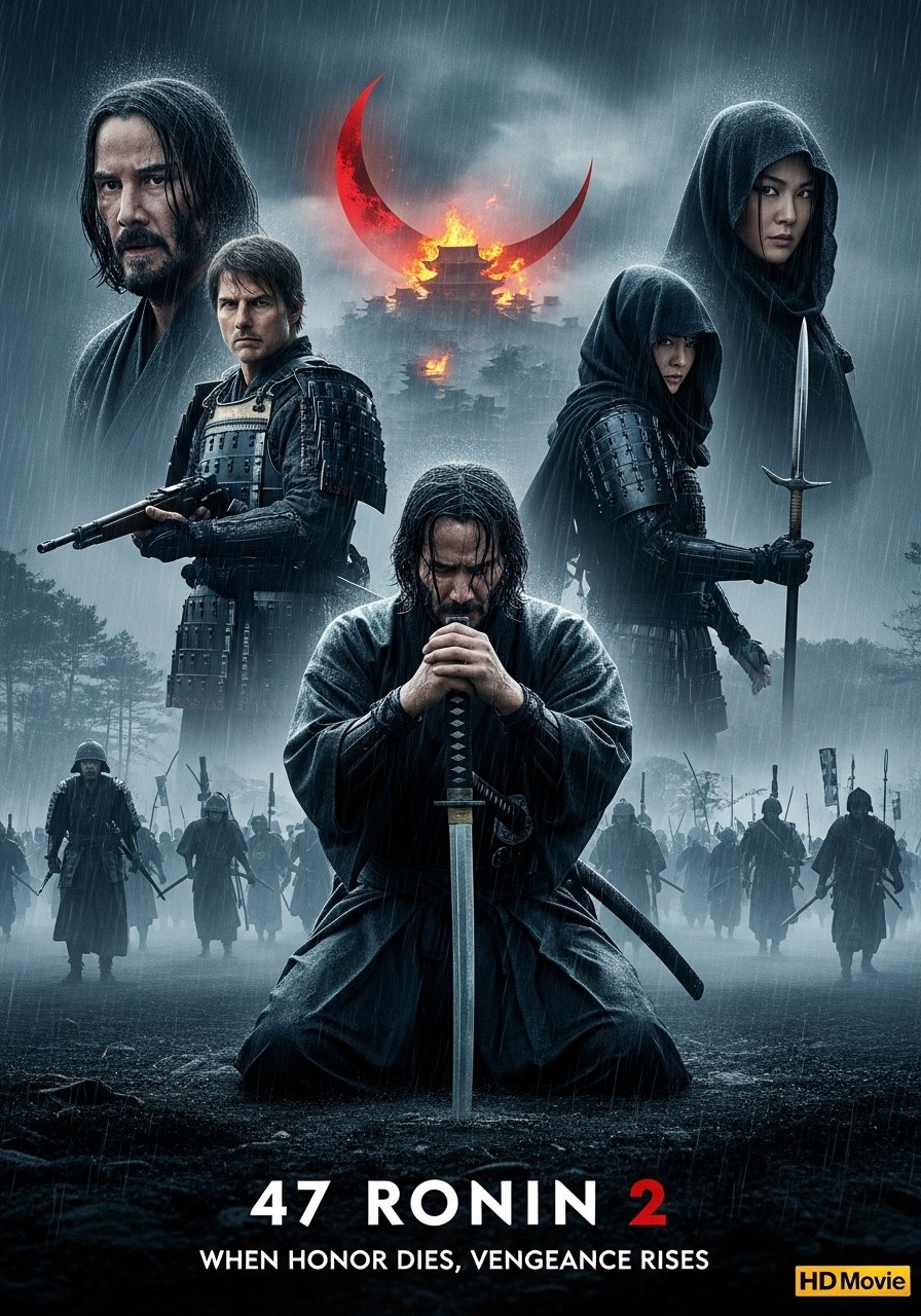 Decades after the legendary battle that cemented their honor, the saga of the 47 Ronin continues in this breathtaking sequel. In 47 Ronin 2, Keanu Reeves returns as Kai, a skilled warrior caught between loyalty, love, and destiny. Tom Cruise joins as a fearless samurai lord from a distant province, whose arrival challenges the fragile balance of power and sets the stage for an epic clash. Angelina Jolie portrays a mysterious sorceress, wielding ancient magic that could either protect or destroy the Ronin, while Ken Watanabe brings gravitas as the wise elder guiding the next generation of warriors.