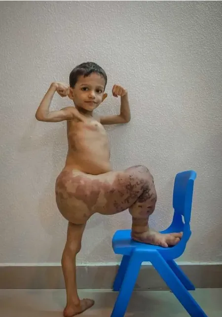 Akshaj Khandelwal is just three years old, yet his life already carries a depth of courage that many adults may never experience. Born in Delhi, India, Akshaj entered the world with a rare and complex medical condition known as Klippel-Trenaunay Syndrome (KTS) — a disorder that affects approximately one in every 100,000 people. From the moment of his birth, his journey has been marked by challenges, uncertainty, and extraordinary resilience.