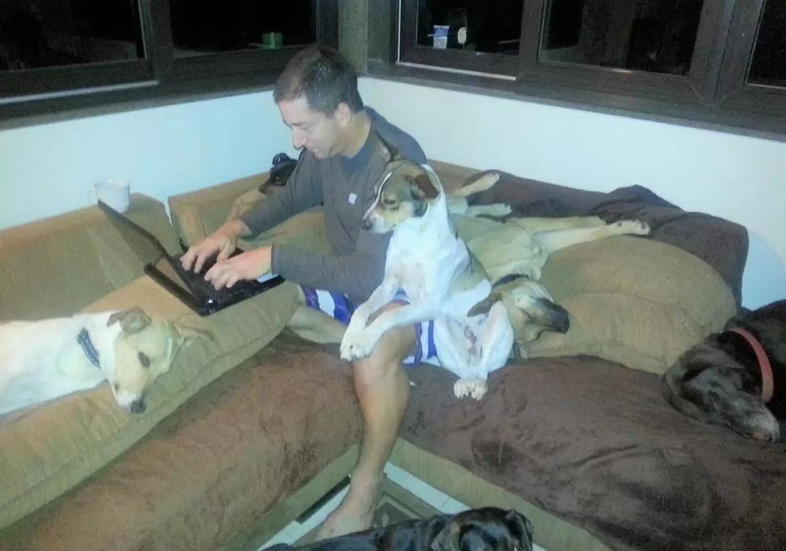 The story began over three years ago when Glenn and David rescued Mabel, an elderly injured dog struggling along a roadside in the forests of Rio de Janeiro. Already caring for seven dogs, they thought taking in Mabel would be just adding another member to their household. But they soon discovered Mabel was heavily pregnant with six puppies. In one day, Glenn and David’s household unexpectedly doubled to 14 dogs.