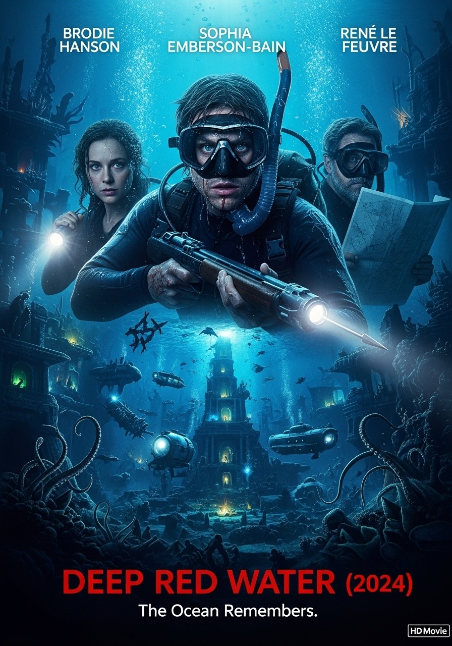 In Deep Red Water, the peaceful coastal town of Clearwater hides a terrifying mystery — one that awakens when the ocean turns crimson overnight. Marine biologist Dr. Elise Ward (Sophia Emberson-Bain) returns home after years away, haunted by the disappearance of her brother during a deep-sea expedition. Alongside Captain Nate Harlow (Brodie Hanson), a rugged fisherman with his own dark past, she begins to uncover evidence of something unnatural lurking below the tides.
