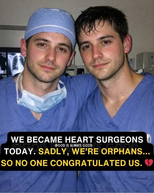 In the image, two young men stand side by side in surgical scrubs. Their expressions are calm but tired, proud yet restrained. Behind them is a hospital room — the place where years of training, discipline, and sacrifice have finally led.