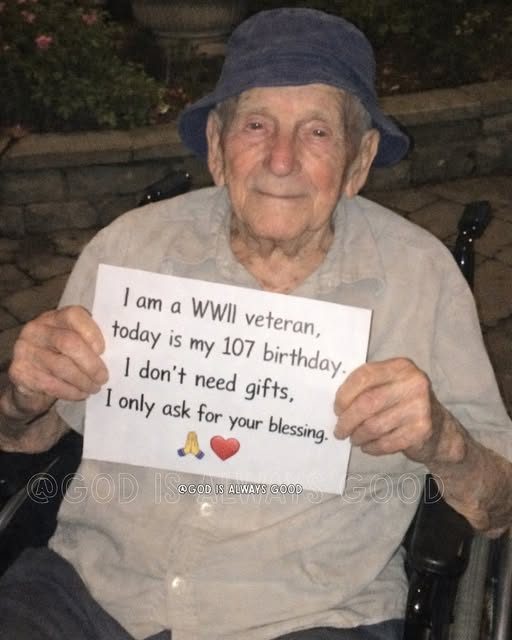 “I am a WWII veteran. Today is my 107th birthday. I don’t need gifts. I only ask for your blessing.”