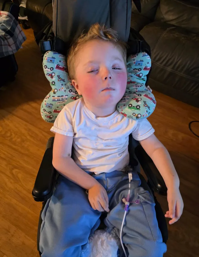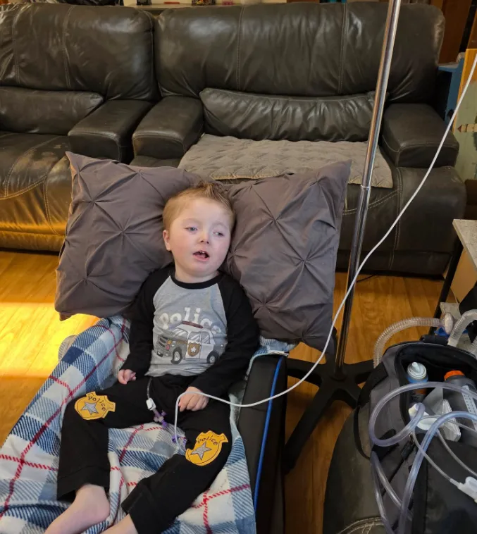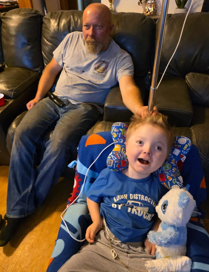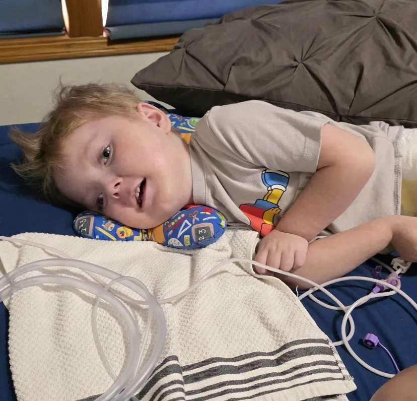 One of the most critical adjustments has been switching from a G-tube to a GJ feeding tube. This change allows Dallas to stay home by ensuring he can receive nutrition, hydration, and medication despite ongoing stomach intolerance.