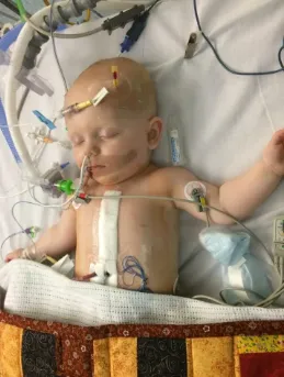 At seven months old, he underwent his second major heart surgery. This time, surgeons closed the large VSD and removed the pulmonary artery band—steps that would allow his heart to function more normally.