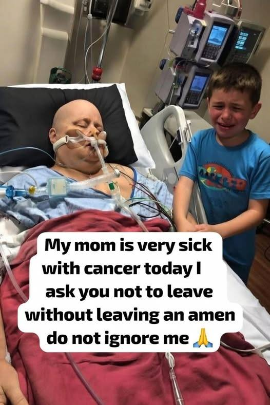 A mother lies in a hospital bed, her body worn down by cancer and treatment. Her hair is gone. Tubes and wires surround her, helping her breathe, helping her survive one more day. Each machine tells a story of how hard her body is fighting. But beside her bed stands another warrior — her child — holding her hand, crying, pleading, believing with a faith far bigger than his small frame.