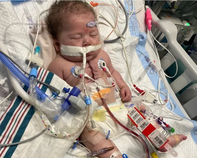 The Norwood surgery was only the beginning. In the days and weeks that followed, Indigo required multiple life‑saving interventions. ECMO was used to support her heart and lungs when her body could not do the work on its own. Even after initial stabilization, her journey remained unpredictable.