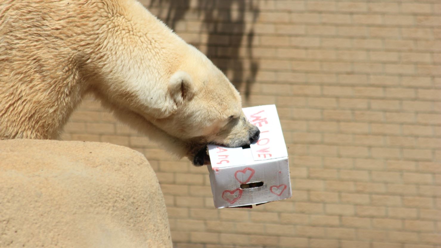 Special treats were offered. Favorite toys were introduced. Caretakers spent extra time with him, speaking softly, offering reassurance. On Valentine’s Day, Wang received a carefully prepared gift—a box filled with fruit and meat, decorated with hearts and a note that read: “We Love You, Wang.”