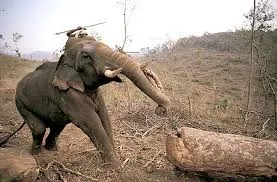 From sunrise to sunset, day after day, year after year, Tiny stood bound by heavy chains—forced to haul massive logs with a body that grew weaker with time. His once-majestic frame became gaunt. His ribs pressed sharply against thinning skin. Deep scars marked his body, silent evidence of sharp tools and cruel commands used to keep him working long past the limits of endurance.