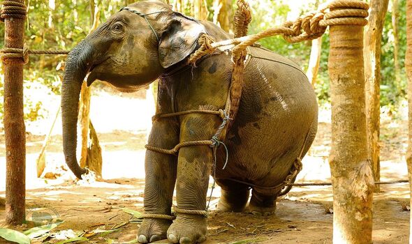 The young elephants are placed into a “crushing cage,” a small wooden enclosure designed to restrict all movement. Inside, they are starved, dehydrated, and kept awake for days. Trainers use sharp tools, including wooden and metal weapons, to inflict pain whenever the elephant resists.