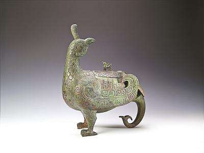 This bronze vessel, skillfully shaped like a bird, dates to the Western Zhou dynasty (1046–771 BC) in ancient China. Such vessels, known as ritual bronzes, were used in ceremonial contexts—often for storing or serving wine during ancestral rituals that symbolized reverence and communication with the spirits.