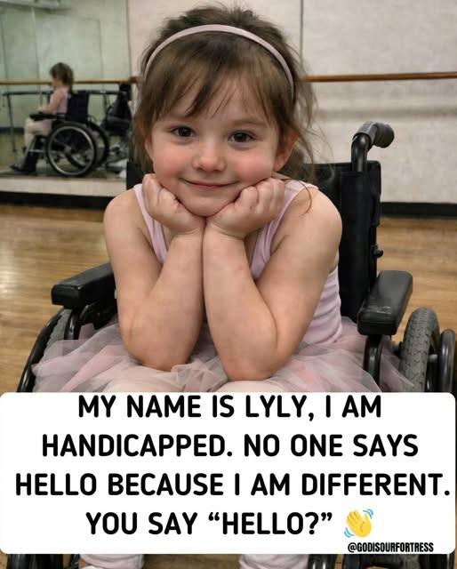 It is a simple introduction from a little girl sitting quietly in a wheelchair, her chin resting gently on her hands, her eyes bright with curiosity and warmth. In the photo, Lyly is smiling—softly, sincerely. Yet the words that accompany her image tell a story that is both tender and unsettling: sometimes, people do not say hello to her simply because she is different.